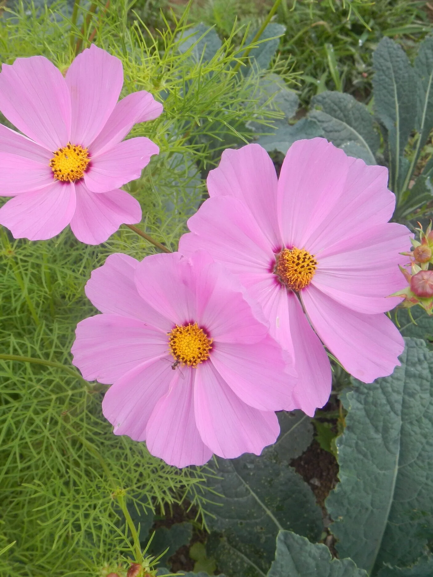 Annual, sun-loving, daisy-like flowers that come in a delightful range of purple, pinks and white. Cosmos bloom all summer long, great cut flower and bees love them!