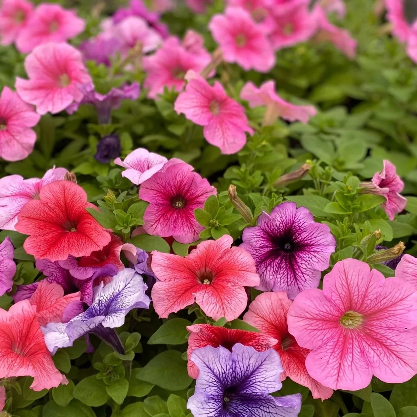 Showy 4” ruffled blooms in shades of blue, pink, plum and magenta. Stunning in baskets.