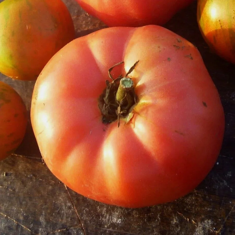 (70 days) Compact Indeterminate. 8-12 oz. fruits are dark pink with green striping, and the flesh is pink with yellow streaks. The flavor is outstanding - sweet and complex like the finest heirlooms.